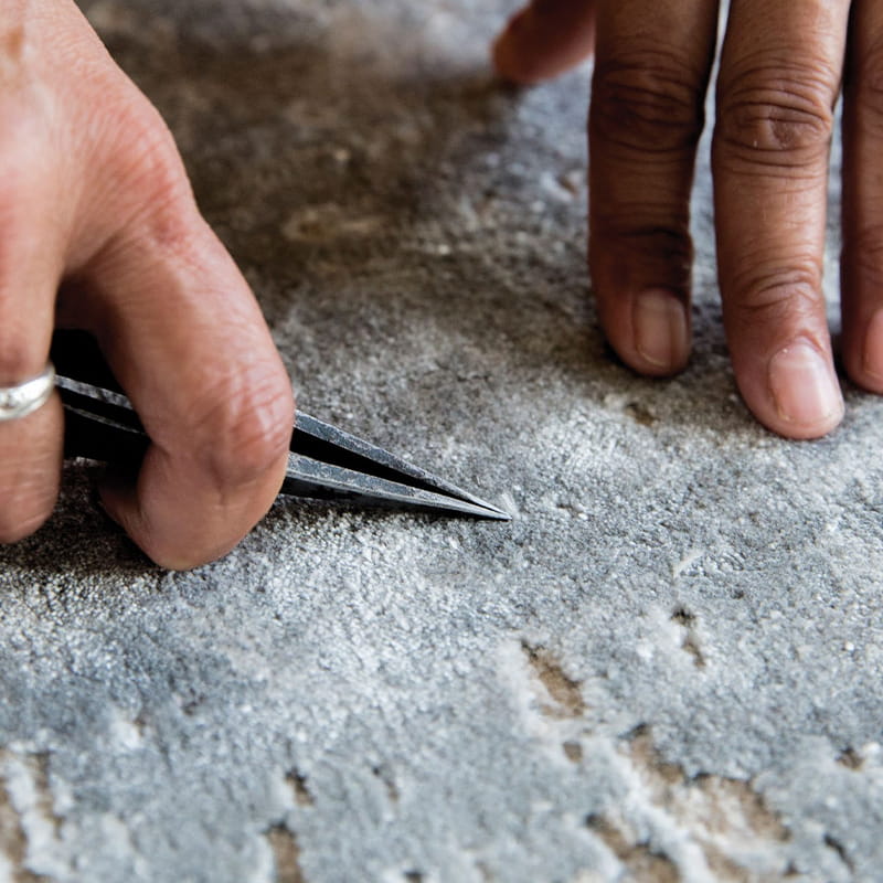 Cada tapete pasa por procesos de ajuste y acabado donde se revisa el detalle, se equilibran superficies y se perfecciona el resultado final. Las variaciones sutiles de color, textura y fibra forman parte de su carácter natural, haciendo que cada pieza sea única.